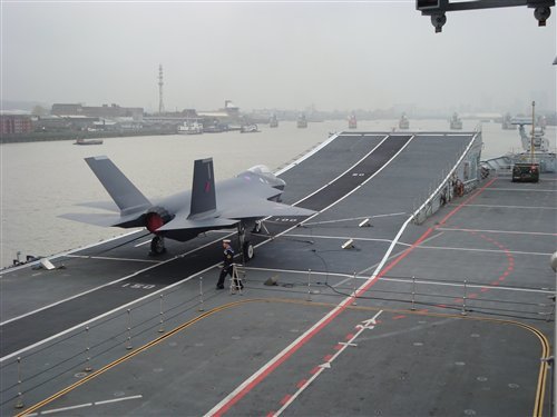 资料图:F-35全尺寸模型在英国航母上测试兼容性