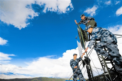 “八一”建军节,雪域高原碧空如洗,海拔5374米的世界最高人控雷达站——空军甘巴拉雷达站,雷达天线傲然旋转。清晨8时,阵地雷达操纵员、下士刘卓民像往常一样坐在显示屏前注视着空情,但他的一号操纵手席位却下降了1874米——移到山下海拔3500米的雷达方舱内。一同值班的三级军士长宋臣臣轻点“遥控开机”指令,屏幕上瞬间显现从阵地发回的空情信息,甘巴拉异地远程控制值勤新模式正式开启。