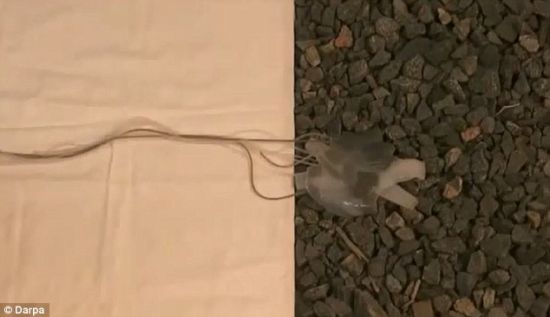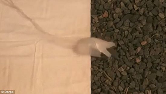 由美国国防部高级研究计划署和哈佛大学联合研制的机器人在向鹅卵石爬行的过程中看起来很不协调。
