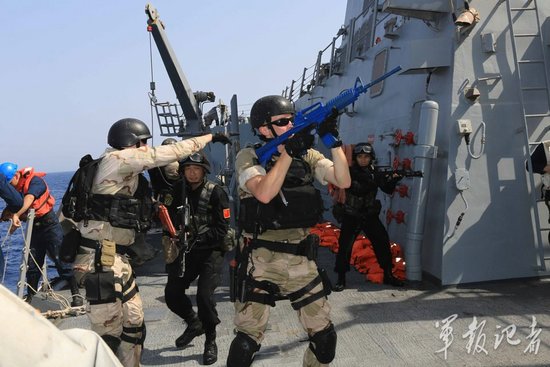 演习回顾时,双方观摩人员认为,中美特战队员的表现各有优长。双方还表示将加强护航国际合作,共同维护亚丁湾的安宁!