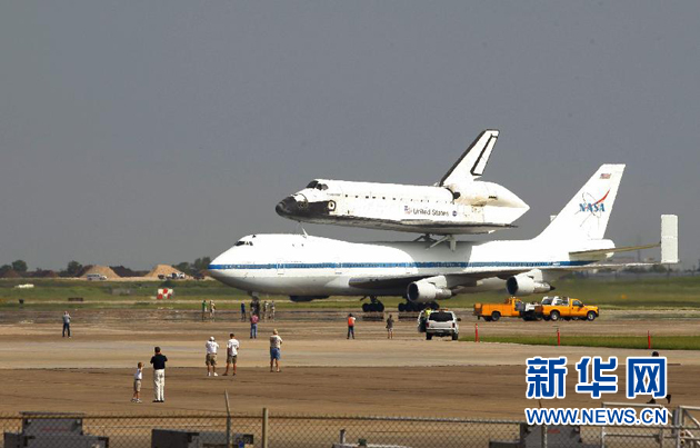 9月19日,一架特制波音747型客机“背”着“奋进”号航天飞机降落在美国埃灵顿空军基地。当日,美国航天局为“奋进”号航天飞机举行荣退告别之旅。“奋进”号航天飞机固定在一架特制波音747型客机背部,当地时间7时15分左右从肯尼迪航天中心起飞,将在佛州、密西西比州和路易斯安那州等地做低空飞行展示,在得克萨斯州休斯敦市约翰逊航天中心“过夜”,预计21日早些时候抵达洛杉矶市。法新社报道,“奋进”号定于10月中下旬“入驻”位于洛杉矶的加利福尼亚科学中心,向民众公开展览。新华社发(宋穹摄)