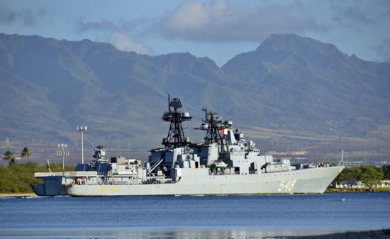 资料图:参加2014年环太平洋军演的俄罗斯“潘捷列耶夫上将”号驱逐舰