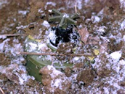 美国国防部供图在波斯尼亚拉伊洛瓦茨的大雪和植物掩埋下,发现了这枚PMA-2地雷。
