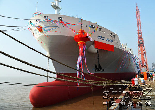 1月15日,沪东中华造船(集团)有限公司长兴码头一片欢腾,为香港东方海外货柜航运公司建造的8888TEU集装箱12号船被正式命名为“东方迈阿密”号。1月16日,“东方迈阿密”号交付船东。
