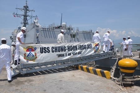 迎接这两艘美国海军船舰的欢迎仪式田萨港举行,越南国防部、海军第3区及岘港市多名官员参加了这次仪式。