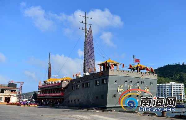 南海网三亚4月24日消息(南海网记者刘嘉珮)三亚港务局联合中国仿古协会、中国船舶(600150,股吧)研究所及国内几所知名院校共同策划、精心打造的豪华仿古游船“海洋长城”号日前正式对外开放。船体总长60米,宽13米,定员人数为450人。整艘船以古风古韵为基调,设计及装饰以长城城墙风格为主导,极具复古典雅风情。