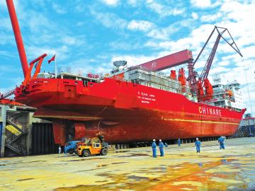目前,“雪龙”船改造工作正按计划顺利推进。此次改造将在保持原有船体结构、总体布置和动力输出指标基本不变的前提下,对动力系统、甲板设备进行恢复性改造,增加和修理部分科考设备。通过更换主机和发电机,改烧轻油,达到国际要求的排放标准。改造后的“雪龙”船,安全运行年限将延长10年~15年。(康明乐 仇江涛 张旭德)