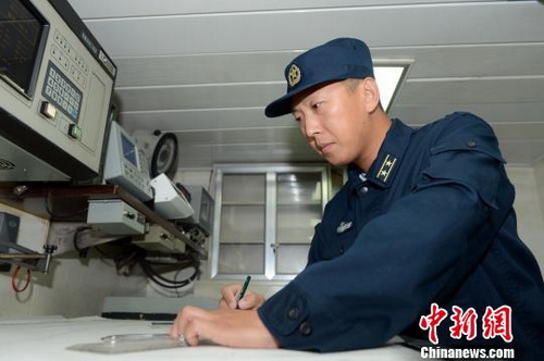 亚丁湾某海域。绵阳舰指控室里,专业号手们正在紧张有序地采集、换算、传递、处理信息。