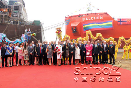雷倍卡女士为新船命名,她将它命名为“巴尔肯”轮。 (中国船舶在线)