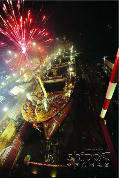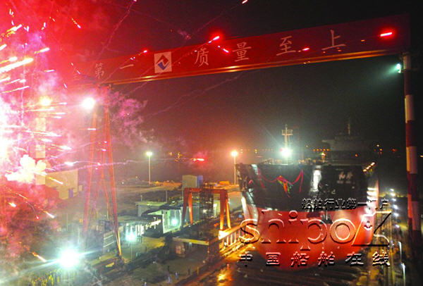 6月21日晚九时15分,浙江正和造船有限公司建造的一艘76000吨级散货船,乘坐在64只气囊上,在船台缓坡作用下,短短105秒时间,成功驶入海中,顺利下水。据悉,该船总长225米,载重吨7.6万吨,是迄今采用气囊下水国内最大吨位吨散货船。