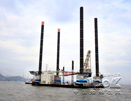 “JB118”平台主要用于45米水深范围内的风电设备海上安装和吊运等工程。即通过装载风力发电设备,拖航至作业海域,完成精确定位后,即由桩腿控制系统把船体抬升为海洋工作平台,通过甲板上的1000T吊机完成风车的安装作业。