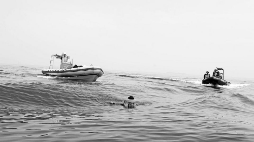救助艇发现落水人员后,立即展开救援