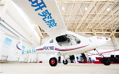 上图 RX1E锐翔双座电动轻型飞机。新华社发(张文魁摄)