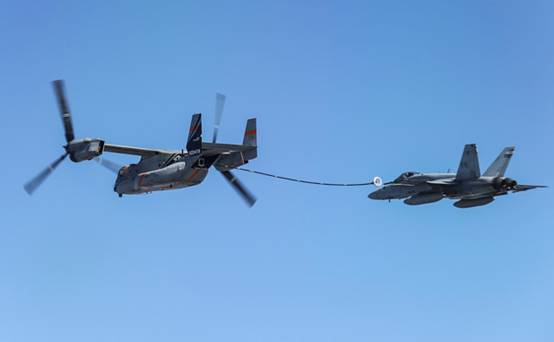 空中加油的概念源于2007年期间进行的利用海军的“鱼鹰”为地面直升机和地面车辆的加油从而为伊拉克战争提供支援的技术研究。(中国航空工业发展研究中心 黄宇新)