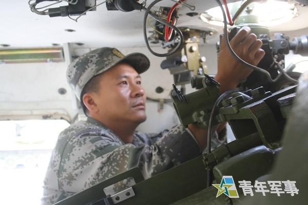 刘艳平在步战车里检查装备性能。