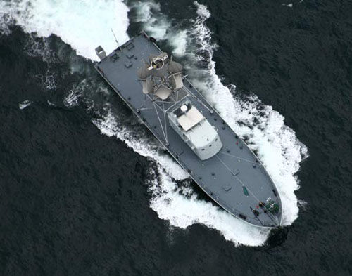 中国新型无人靶船在海面上驰骋。(崔晓龙摄)