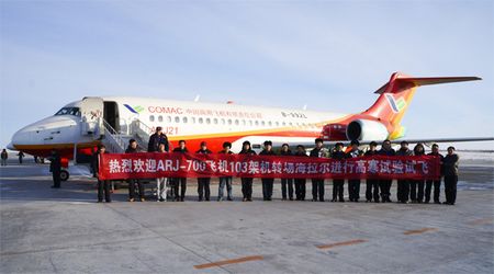 2013年12月29日,ARJ21-700飞机103架机成功转场海拉尔,标志着ARJ21-700飞机2013年高寒试验试飞正式拉开帷幕。