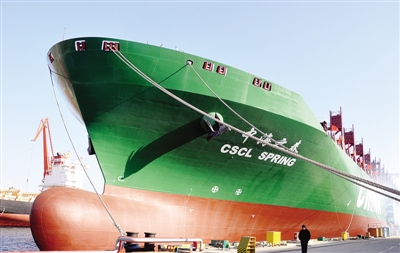 1月8日,由我国完全自主研发、自行设计、自行建造的第一艘1万TEU(标准箱)集装箱船“中海之春”号在中国船舶重工集团所属大连船舶重工集团有限公司签字交工。该船的交工,不仅实现了国内建造超大型集装箱船新的飞跃,而且使我国成为继韩国、日本之后,能够自主研发、自主设计、自主建造超大型集装箱船的国家。(新华社发 来源:科技日报)