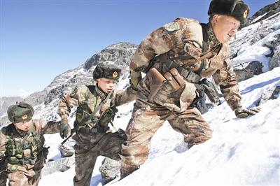 海拔越来越高,山势越来越陡,官兵们的喘气声越来越大,每走一步都异常艰难。在一处仅容得下一双脚的悬崖小路上,李兴文大声叮嘱大家手拉手,不要向下看。记者忍不住向下瞟了一眼,立刻觉得头晕目眩,心跳加速——脚下的冰河细如白线,空气仿佛停止了流动。大家侧着身、手牵手,小心翼翼缓缓通过。