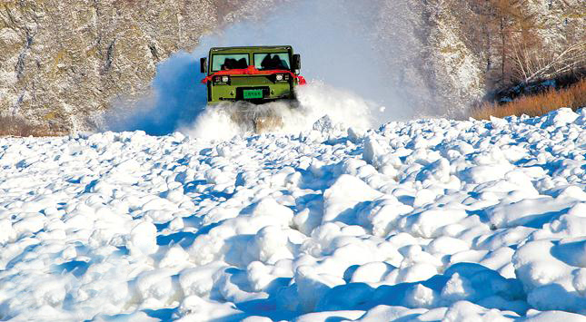 远远望去,严冬的额尔古纳河宛如一条银蛇蛰伏在大兴安岭崇山峻岭间。但当我们走近时,看到的却是一副冰排林立、犬牙交错的狰狞面孔。马年新春,内蒙古呼伦贝尔军分区首次使用新装备闯冰河。