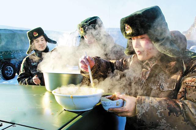 据内蒙古军区边防某团团长孙建国介绍,由于去冬今春气温变化不定,界河冻了又化,化了又冻,冰凌特别多,远远望去,冰河犹如凝固的波涛。兵车一路艰难北上,官兵们睡在车里,吃在路上。冰道一米一米向前推进,几天下来,记者真正体会到边防官兵的艰辛付出。