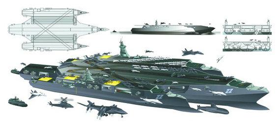 “ZZ号三舰体浮岛式隐身潜航母”(组图)