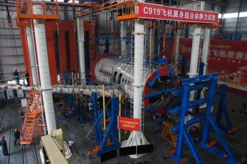 3月29日上午, C919大型客机翼身组合体静强度研究试验首项试验在中航工业强度所阎良新区121试验室顺利完成,中国商飞副总经理吴光辉、强度所高级专务杨海及专家组现场观摩了试验。