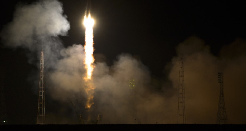 当地时间3月26日,两名俄罗斯宇航员和一名美国宇航员搭乘俄罗斯飞船前往国际空间站。(图片:美国媒体)