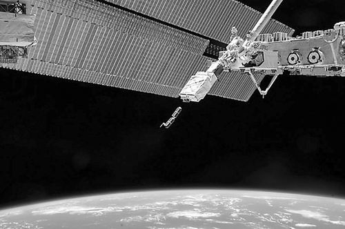 2014年2月,两个30厘米长的地球观测立方体卫星从国际空间站发射升空。图片来源:NASA
