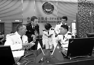 5月20日,中俄双方指挥员在联合指挥部对参演兵力进行研究部署。新华社发