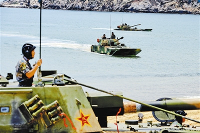 5月30日,南京军区某装甲旅组织两栖装甲突击车围绕海上协同作战和海上火力打击等课目进行实战化训练。(解放军报)