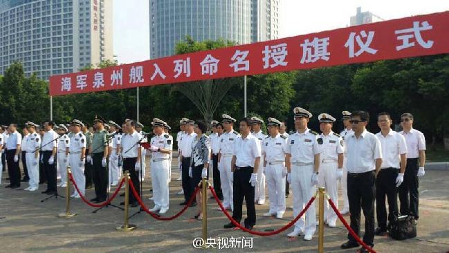 人民网北京8月8日讯 据央视新闻微博消息,今天上午,新型导弹护卫舰——泉州舰入列命名授旗仪式在东海舰队某水警区举行。据悉,泉州舰舷号588,是我国自行研制建造的新一代轻型导弹护卫舰,主要担负巡逻警戒、护渔护航、反潜作战、对海作战等使命任务。(张建庆、胡善敏)