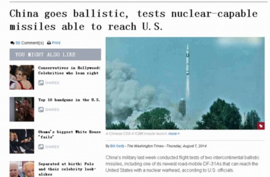 原标题:美媒:中国上周接连射东风31A和东风5型洲际导弹