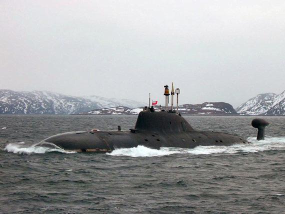 971型“狗鱼-B”级核潜艇由圣彼得堡海军机械制造局设计制造,艇长110.3米,宽13.6米,平均吃水9.7米,艇体由弱磁钢造成,极限下潜深度600米,水下速度33节,水面速度11.6节,是俄海军潜艇中速度最快的潜艇之一。航行自持力100天,舰员73人,装配一座ОК-650型核反应堆。该潜艇装备有РК-55 “石榴”核弹头巡航导弹,导弹鱼雷和潜射导弹。(中国国防科技信息网 中国船舶工业综合技术经济研究院 董姗姗)