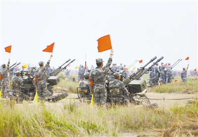 渤海湾畔,硝烟弥漫。在某高炮训练基地,数百门火炮直指苍穹,空中靶标一个个应声“开花”……这是8月下旬,天津警备区组织民兵预备役高炮分队实弹射击演练的镜头。