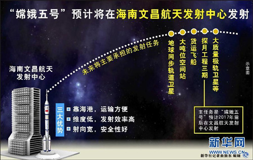 新华社图表,北京,2014年10月26日 图表:“嫦娥五号”预计将在海南文昌航天发射中心发射