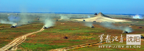 沈阳战区“联合行动-2014E”实兵演习现场开展陆空联合训练。许地理、记者牛辉 摄