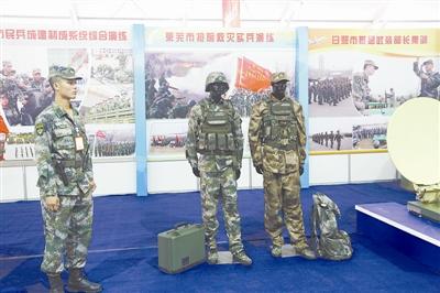 济南战区国防动员潜力展示上,地方企业研制的高科技军服。 本报特约记者 熊永岭 摄