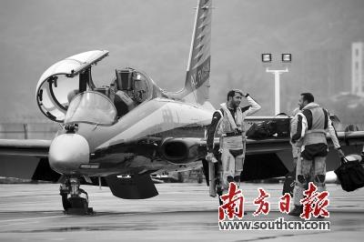 8日14时50分,珠海机场细雨带风。伴随着震耳轰鸣声,9架教练机在珠海机场上空盘旋一圈后,缓缓降落停机坪。有着“国宝级”称号的飞行表演队阿联酋“骑士”,在迟到一天后终于抵达珠海。