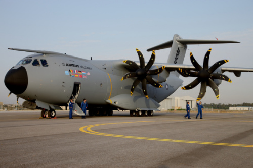 A400M是欧洲自行设计、研制和生产的新一代军用运输机,也是欧盟国家进行合作的最大的武器联合研制项目。该机最大载重量37吨,最高时速560千米/小时,载重37吨的最大飞行范围3300千米。(怀秋)