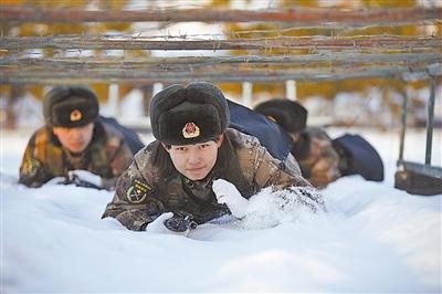 11月中旬,黑龙江省军区某边防团在零下15摄氏度的严寒中扎实开展军事训练。图为该团女兵排战士在雪地中进行战术训练。 (魏建顺 摄 解放军报)