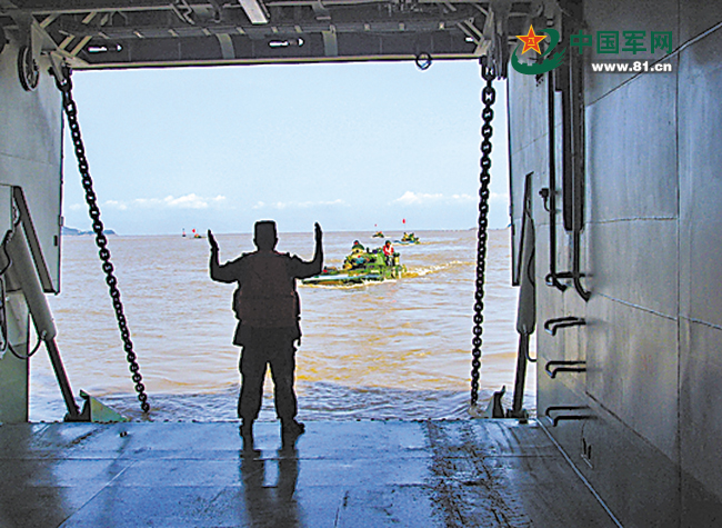 初冬时节,东海某海域,战舰列阵、战车轰鸣。“开始装载!”随着指挥员一声令下,处于战备状态的登陆舰迅速打开舱门,一辆辆装甲车和两栖坦克快速驶进舰舱……东海舰队某登陆舰大队与友邻部队开展的一场实战化联合演练拉开战幕。