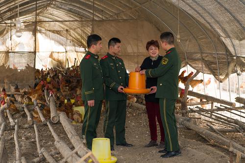 11月23日,武警合肥支队的战士们在学习养鸡技术。