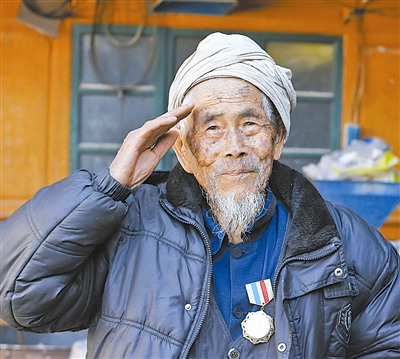 90岁的陆朝儒老人原是远征军第54军预备2师第6团士兵。采访结束后,他坚持把摄制组成员送到村口,并主动唱起了当年的抗日歌曲。后来,为摄制组翻越高黎贡山提供保障的马帮,也是由他的孙辈组成的。作者提供