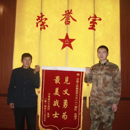 “如果不是你及时仗义出手相救,后果简直不敢想象,谢谢你的救命之恩……”12月11日上午,辽宁省朝阳市建平县万寿镇68岁老人张华,手捧一面写有“见义勇为、最美战士”字样的锦旗,专程赶到沈阳军区某部,向该部管理处卫生所卫生员、上等兵毛骎子致谢。
