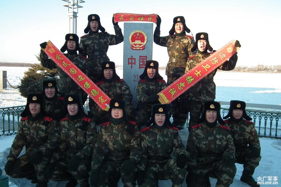 边防官兵向全国人民祝福元旦快乐。