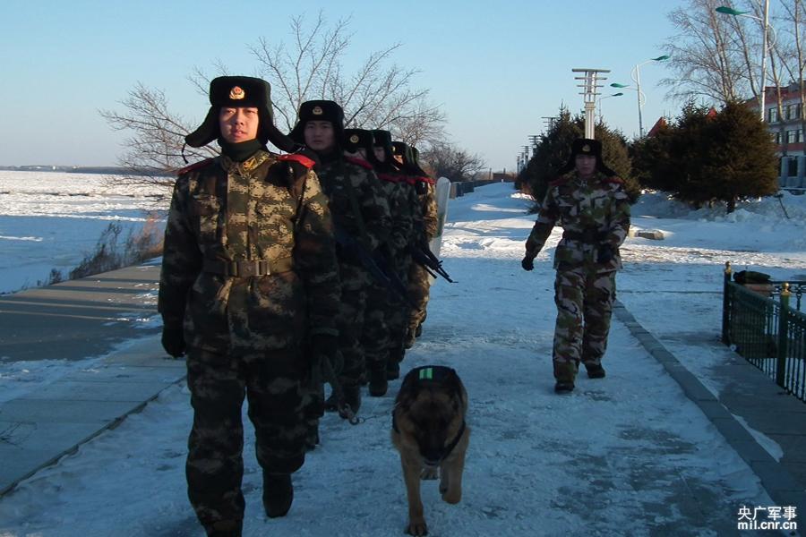 黑龙江进入封冻期,驻守在中俄边境一线名山岛的黑龙江鹤岗边防支队名山边防派出所、萝北边防大队机动中队开展所队联勤,维护边境地区和谐稳定。