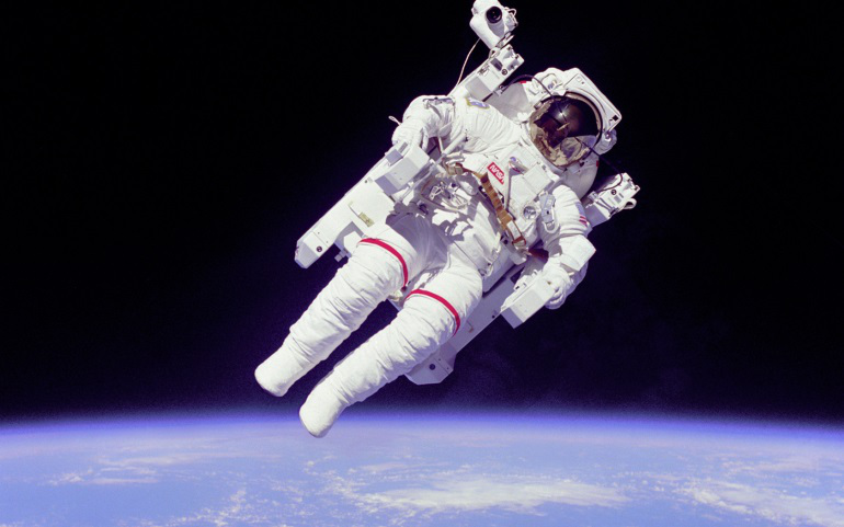 1984年2月7日,美国“挑战者”号航天飞机航天员麦坎德列斯和斯图尔特不系安全带离开航天飞机实现太空行走,成为人类探索太空奥秘的第一批“人体地球卫星”。