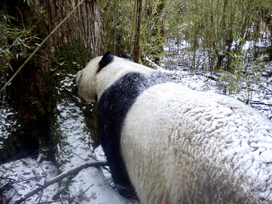 大熊猫在深山密林中主要是靠嗅觉辨别方向。(来自中国国家地理)