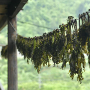 (湖北省宣恩县彭家寨古吊脚楼里晾晒的山野菜。 新华社发(宋文 摄))